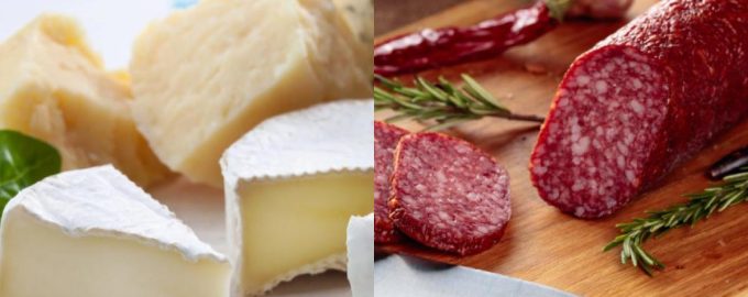L’elenco include formaggio e salsicce.